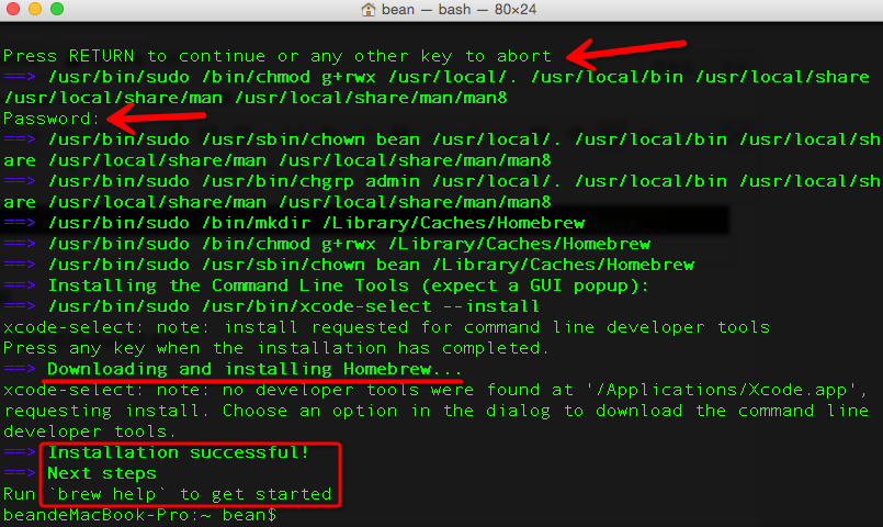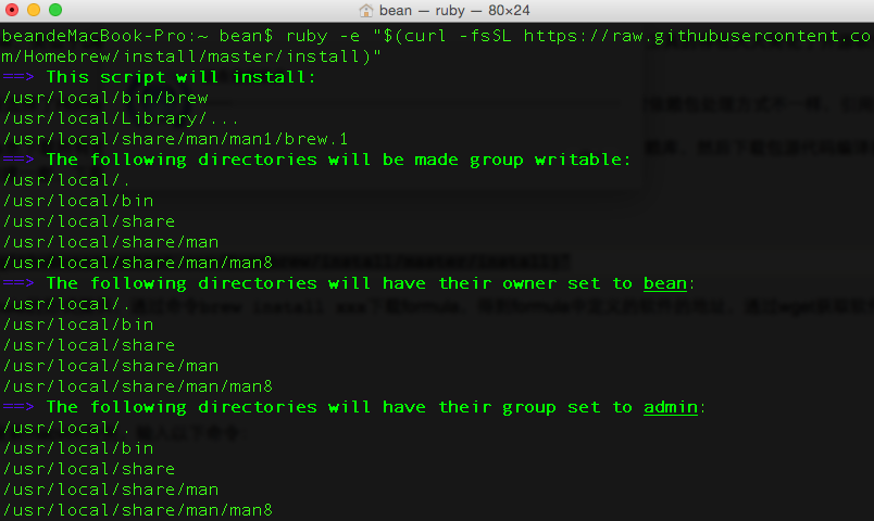 ruby -e "$(curl -fsSL https://raw.githubusercontent.com/Homebrew/install/master/install)"然后输入回车,继续,再输入密码,最后再回车一次即可
