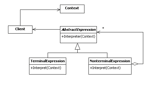 地调用表示R1到Rn的那些对象的解释操作 - ④、Context(环境类):包含解释器之外的一些全局信息