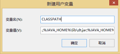在系统变量中点击新建。变量名填写CLASSPATH,CLASSPATH作用是指定类搜索路径。java虚拟机是通过CLASSPATH寻找类的。需要将安装目录lib下的dt.jar和tools.jar设置到CLASSPATH中,特别注意需要把当前路径设置到 CLASSPATH中(即.;)。所以变量值填写“.;%JAVA_HOME%\lib\dt.jar;%JAVA_HOME%\lib\tools.jar” (引号中的内容)。点击确定即可。