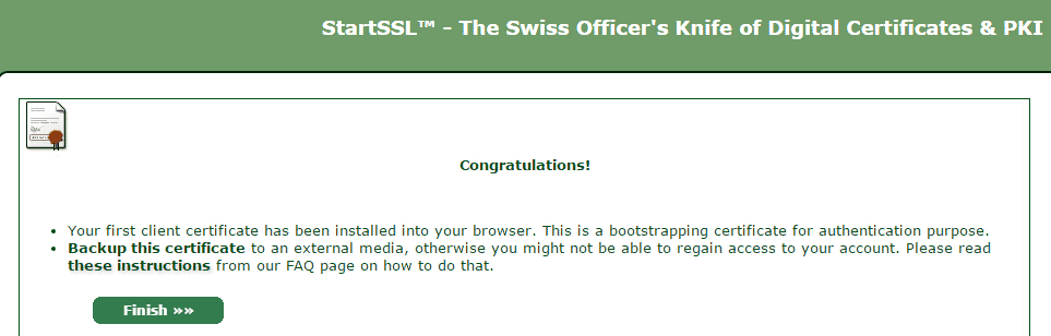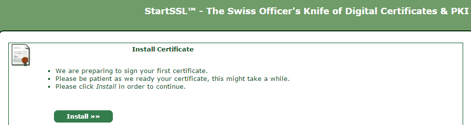 只有安装了StartSSL提供的浏览器证书,才能进入到StartSSL网站的授权页面,从而申请SSL证书。