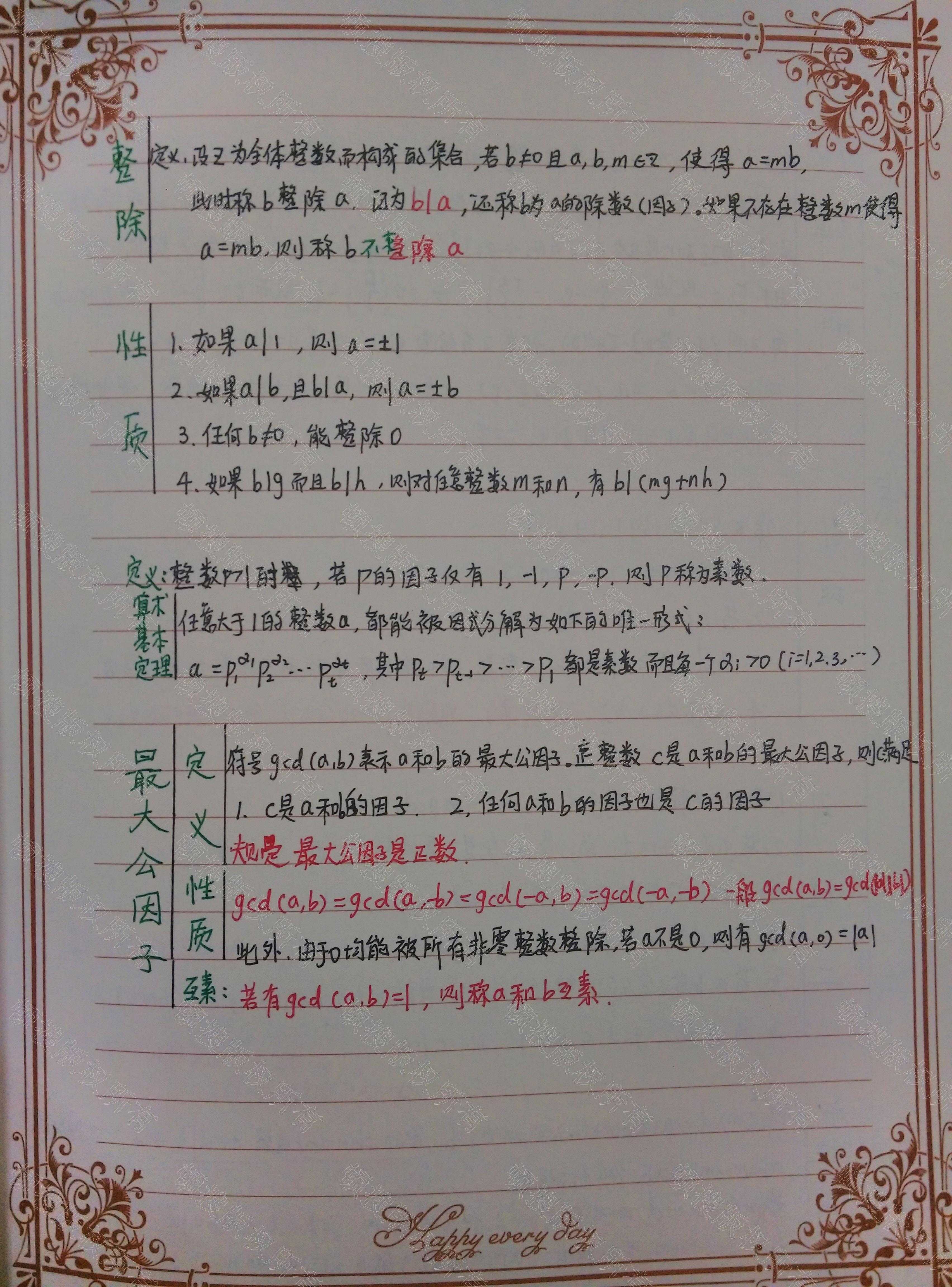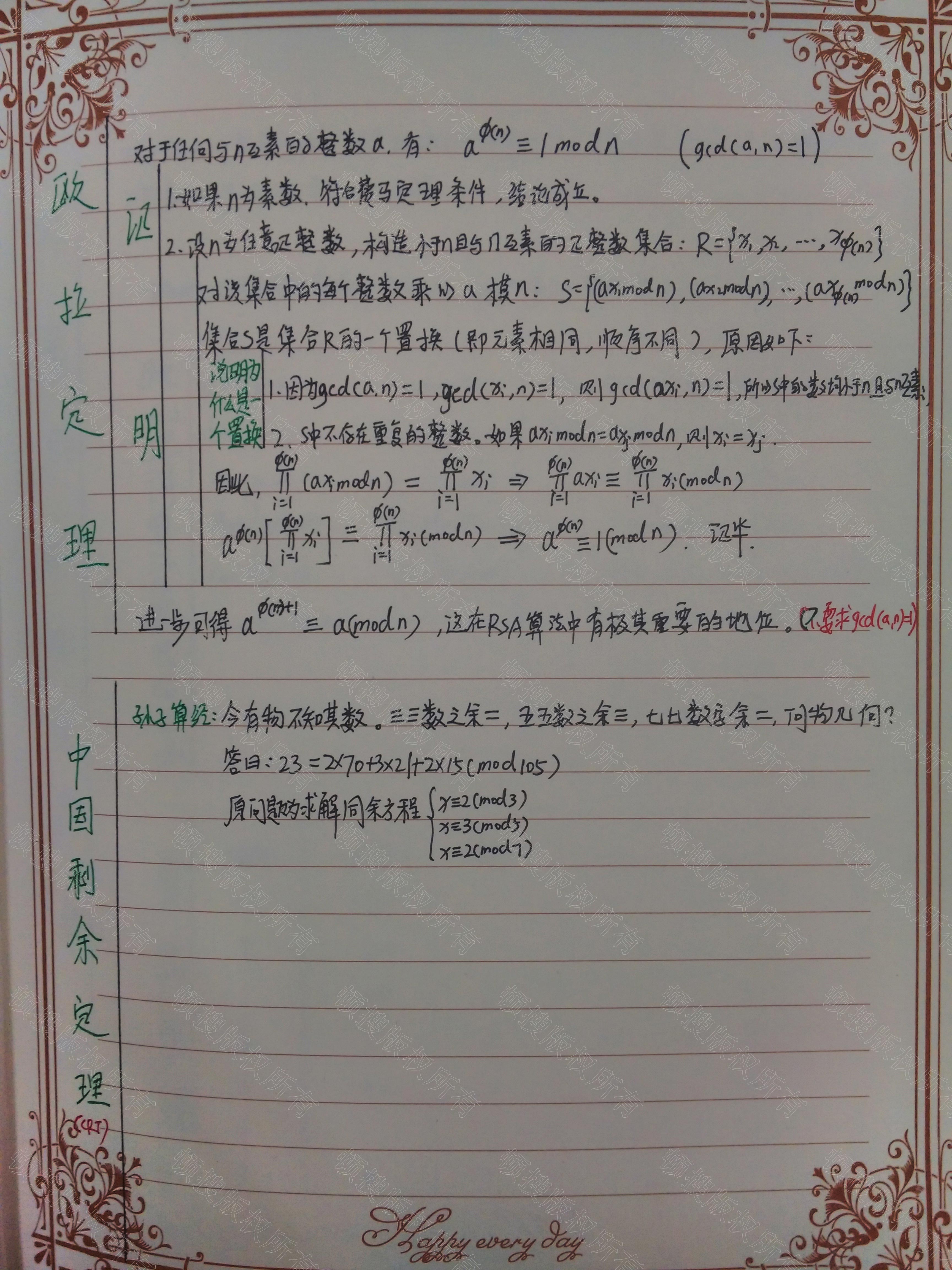 数论中的许多概念在设计公钥密码算法时时必不可少的。数论主要关心的素数,费马定理和欧拉定理在公钥密码学中占有重要的地位。整除模运算都是比较重要的概念,其中中国剩余定理就是模运算的经典实例,只有深刻理解模运算,才能领会中国剩余定理的精粹。