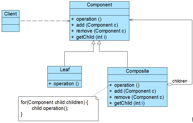 只有容器构件角色才配备管理聚集的方法,而叶子构 件没有这些方法