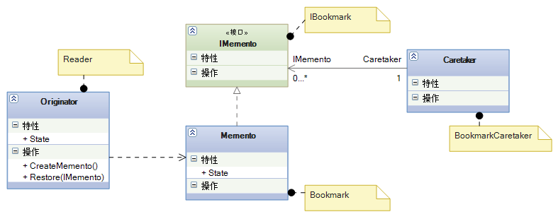 - ④、只有原发器可以向备忘录中存取信息,备忘录对其他的对象“不可见”。
