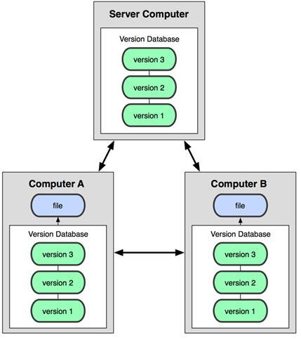 分布式版本控制系统( Distributed Version Control System,简称 DVCS ),像 Git,Mercurial,Bazaar 以及 Darcs 等,客户端并不只提取最新版本的文件快照,而是把代码仓库完整地镜像下来。