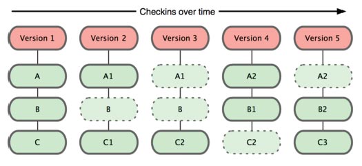 最流行的一种叫做 rcs,它的工作原理基本上就是保存并管理文件补丁(patch)。文件补丁是一种特定格式的文本文件,记录着对应文件修订前后的内容变化。所以,根据每次修订后的补丁,rcs 可以通过不断打补丁,计算出各个版本的文件内容。