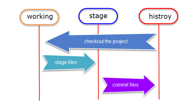 Git 管理项目时,文件流转有三个工作区域:Git 的工作目录(工作区),暂存区域,以及本地仓库。