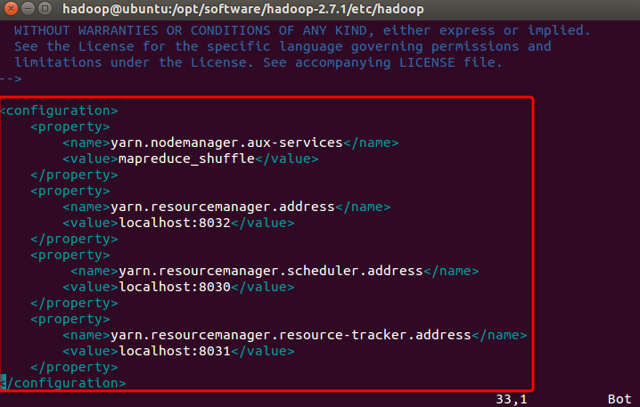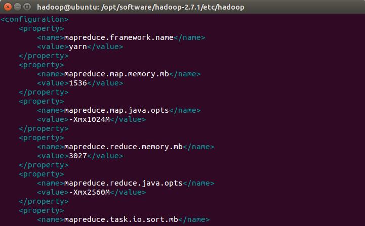 vim mapred-site.xml编辑mapred-site.xml文件,增加以下内容